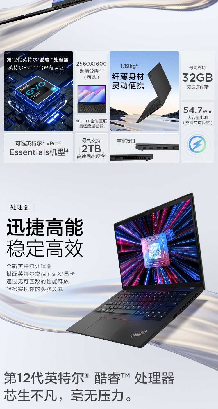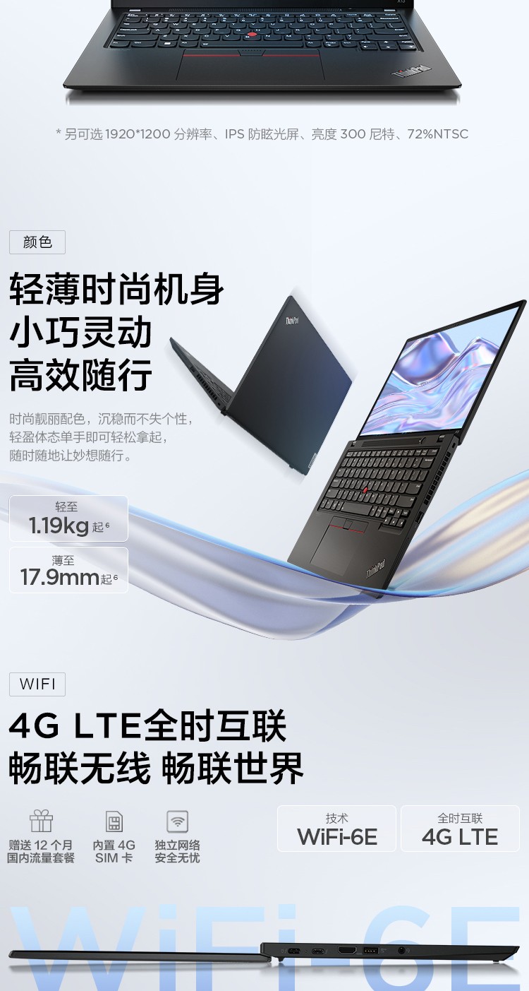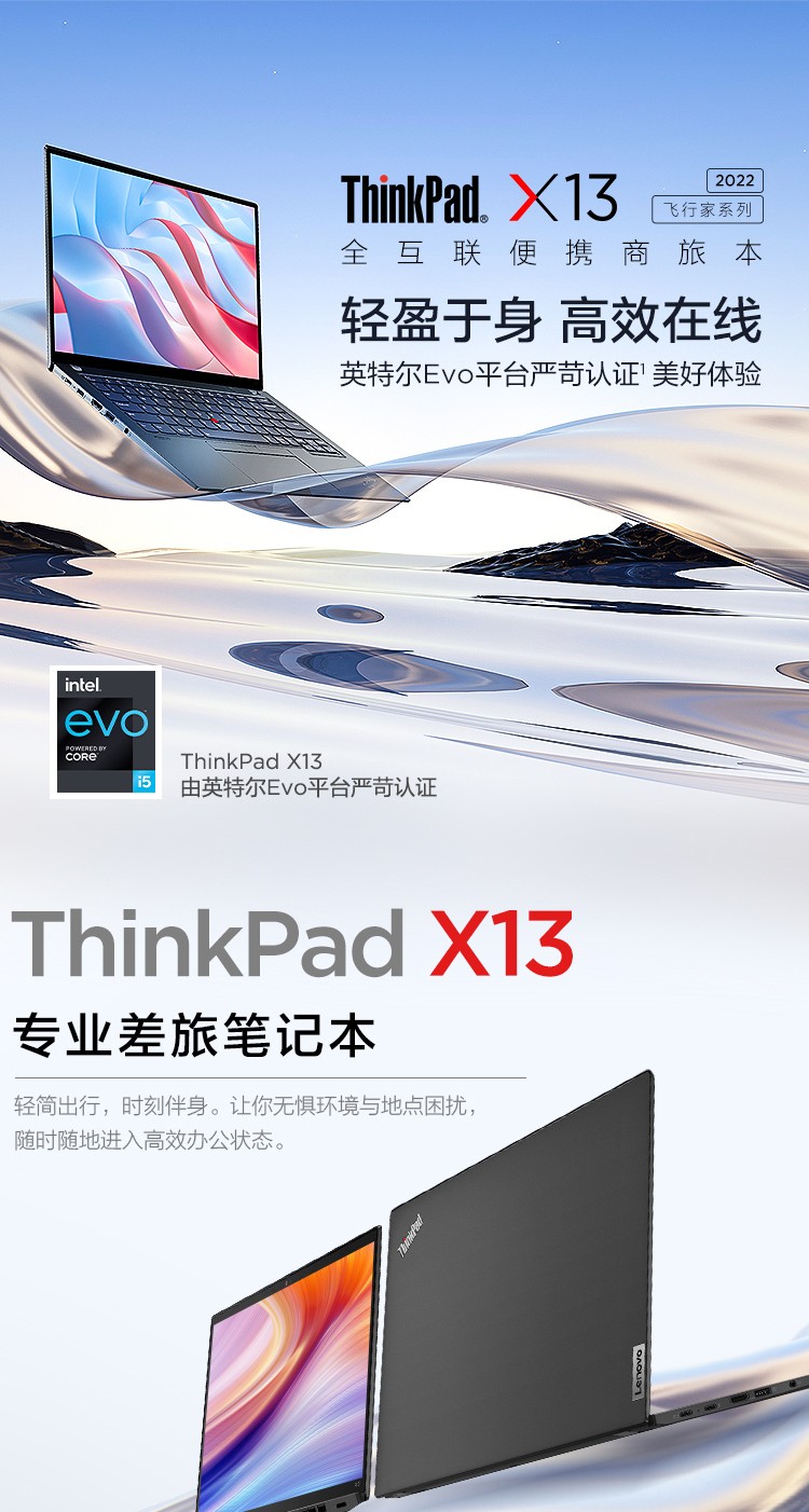 商品名称:ThinkPad 联想 X13 2022高端轻薄本 13.3英寸游戏商务办公超薄笔记本电脑 指纹识别 12代i5 16G 512G 02CD