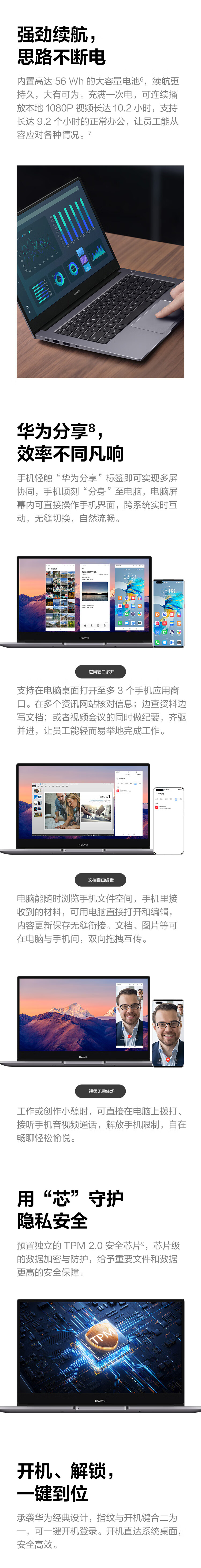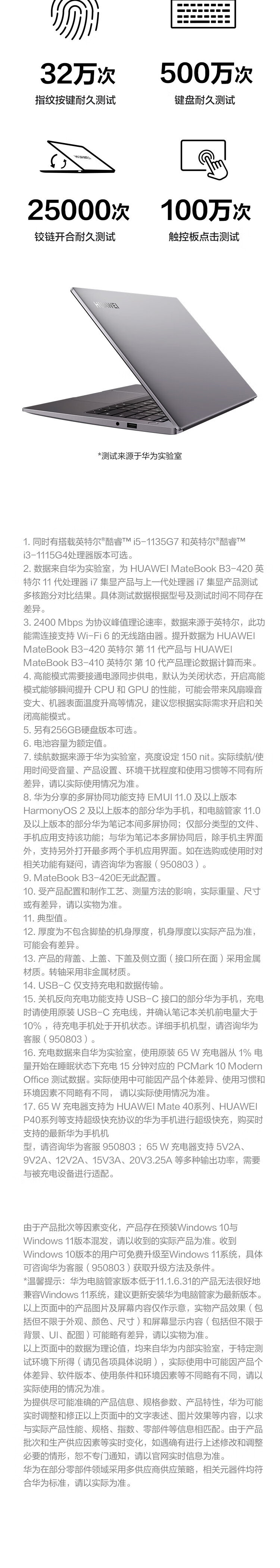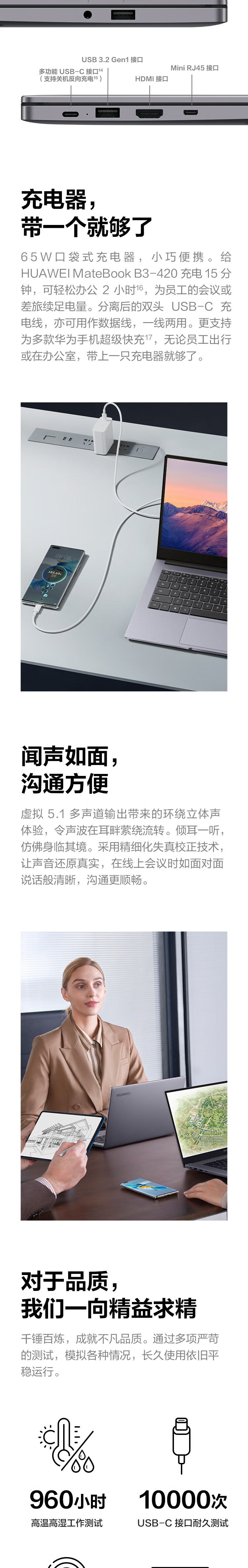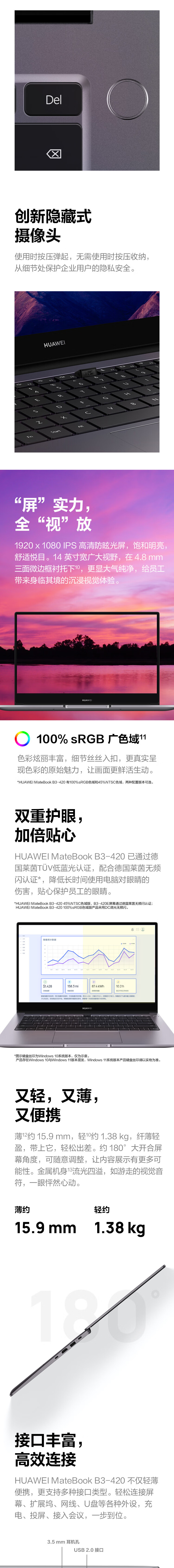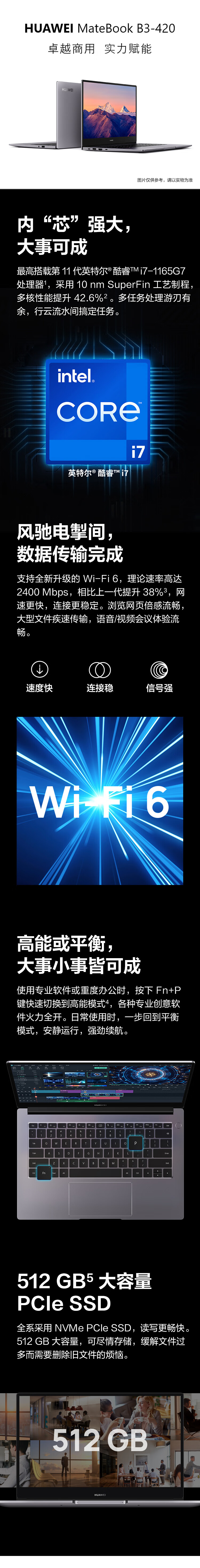商品名称:华为笔记本电脑 MateBook B3-420 14英寸轻薄本 (i7-1165G7 16G 512G) 深空灰
