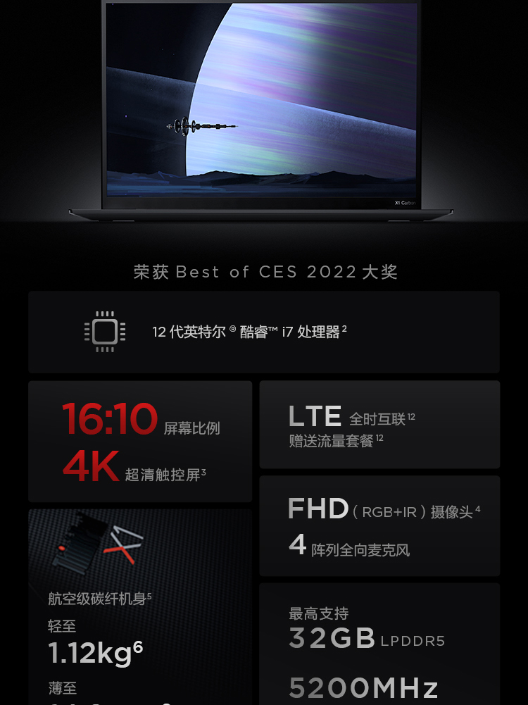 商品名称:ThinkPad X1 Carbon 2022款12代英特尔酷睿处理器14英寸高端商务轻薄笔记本电脑 12代i5 16G 512G 02CD 2.2K屏