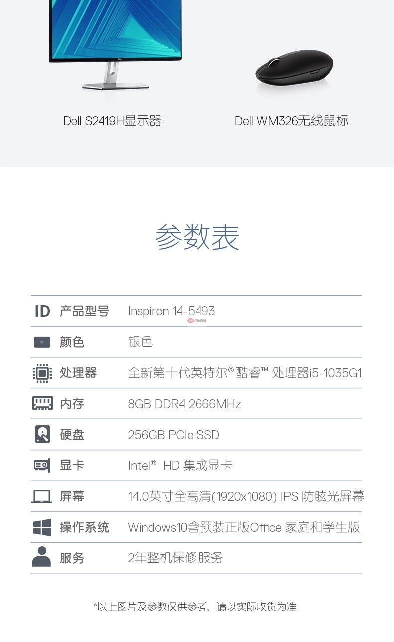 商品名称:戴尔(DELL)灵越5493/5593燃5000学生游戏14英寸商务办公轻薄手提笔记本超极本女电脑 高配i5-1035G1/16G/512G/2G独显