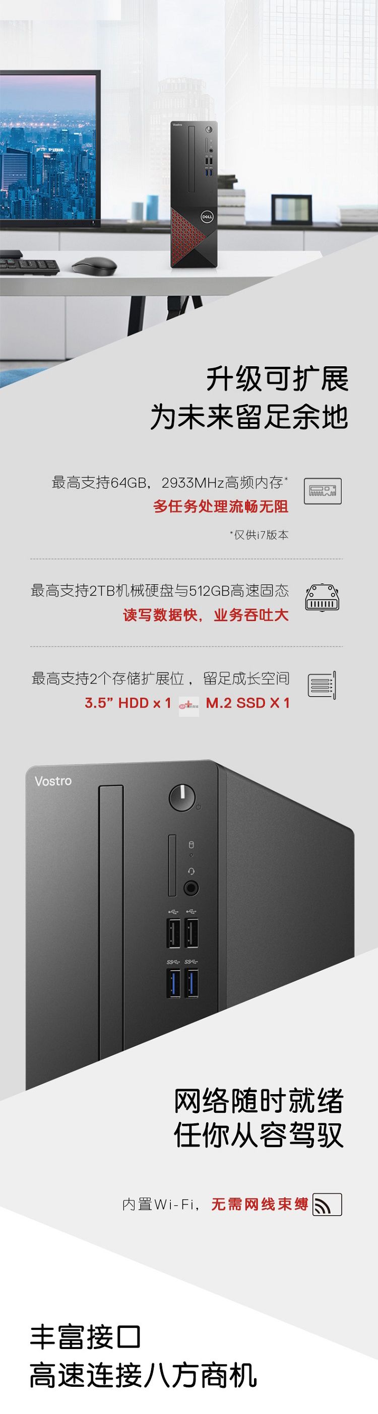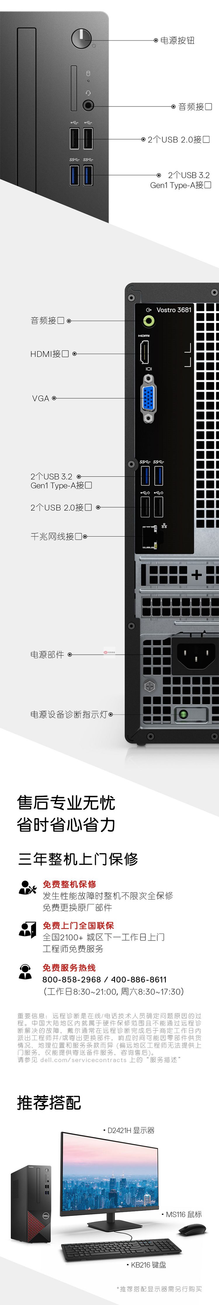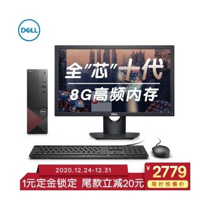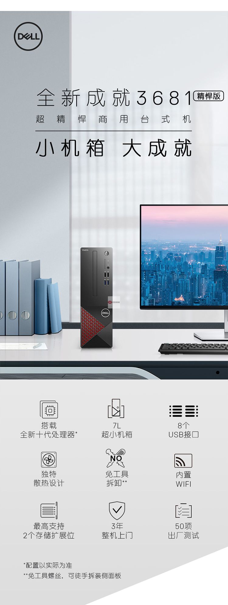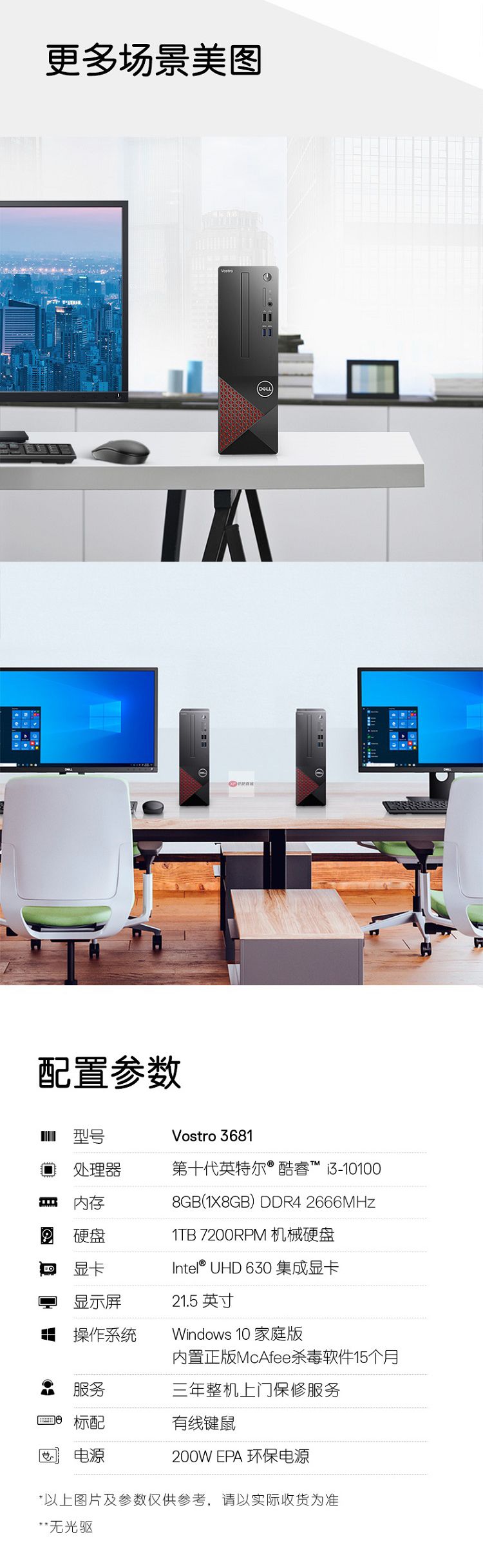 商品名称:戴尔(DELL)成就3681英特尔酷睿i3商用办公高性能台式机电脑整机(十代i3-10100 8G 1T 三年上门售后)21.5英寸