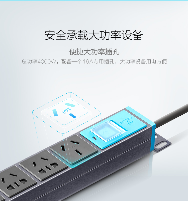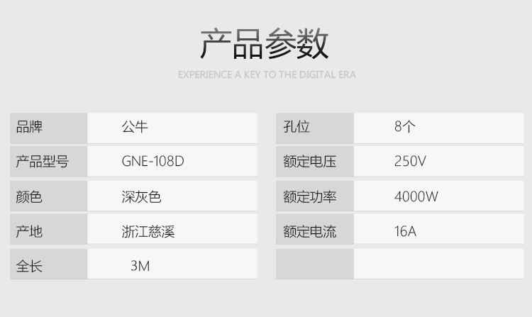 商品名称:公牛(BULL)16A大功率插PDU机柜座/插线板/插排/排插/接线板/拖线板 8位总控全长3米 GNE-108D
