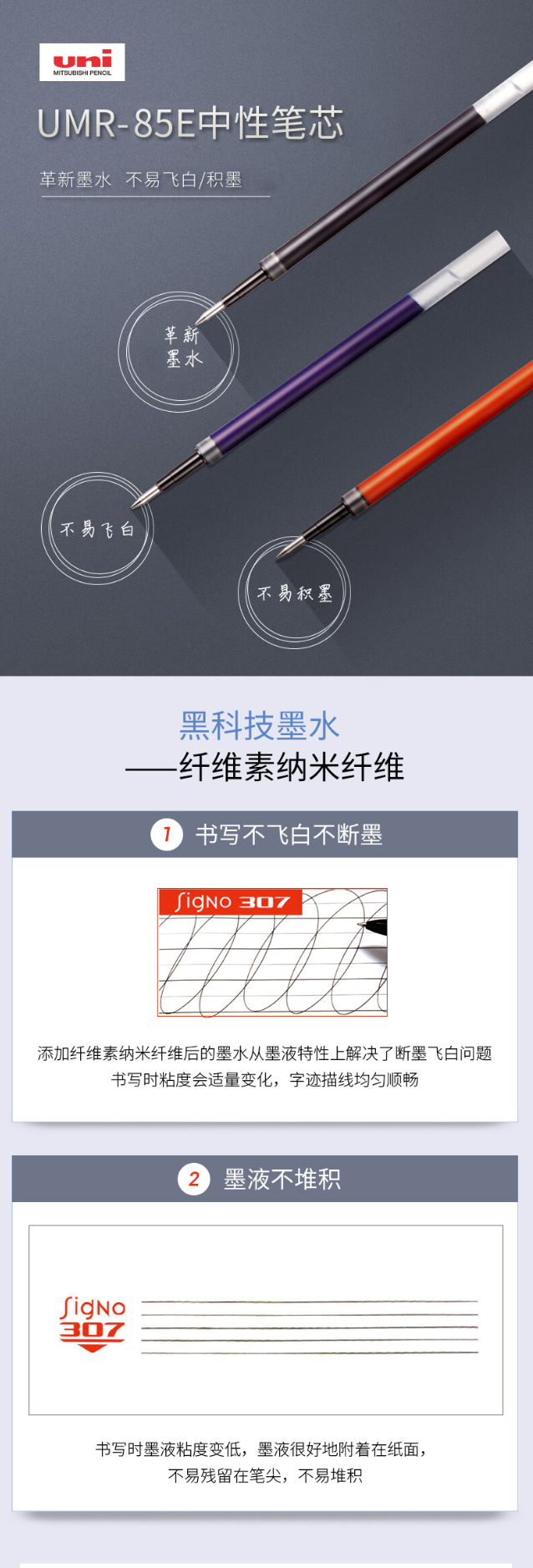 商品名称:三菱中性笔替芯UMR-85E/85N 适用UMN-307/207/152/105/155 0.5mm 红蓝黑 10支盒装