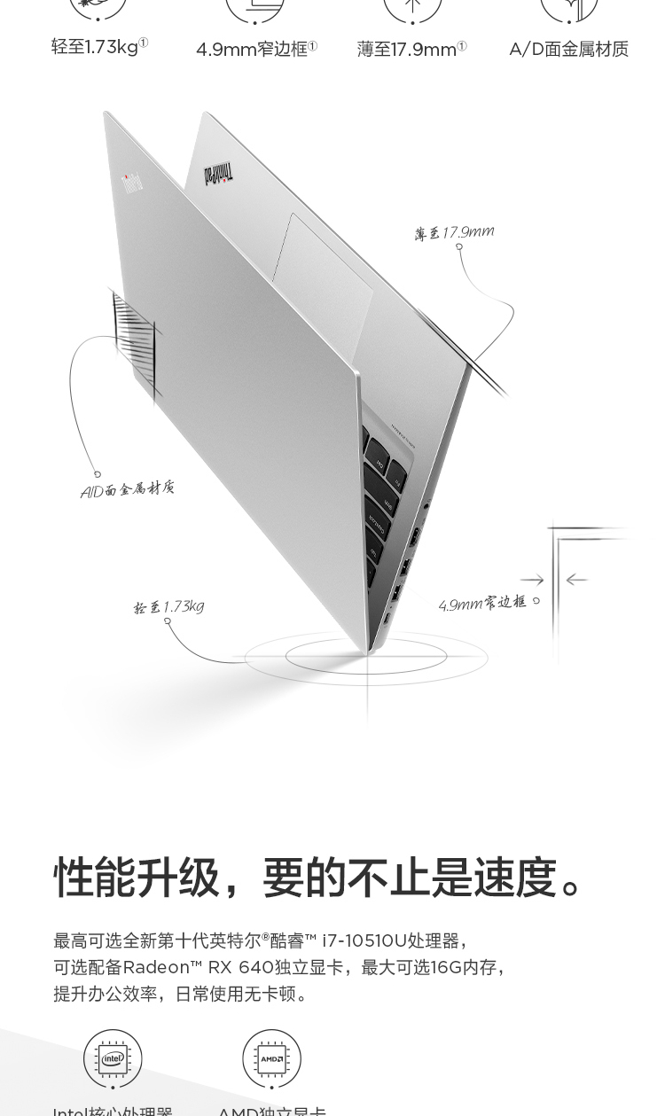 商品名称:联想ThinkPad 翼14 Slim(39CD)英特尔酷睿i3 14英寸轻薄笔记本电脑(i3-10110U 8G 256GSSD FHD)银