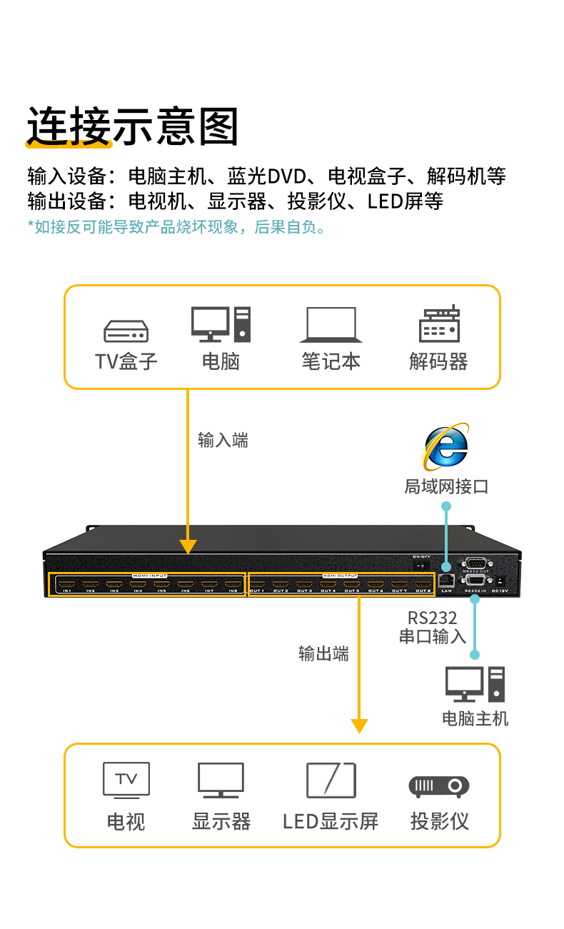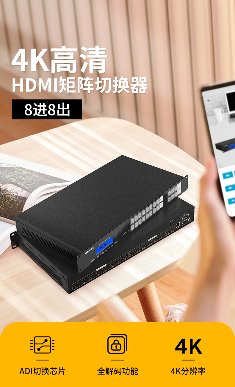 商品名称:迈拓维矩(MT-viki)MT-HD0808 hdmi矩阵切换器 8进8