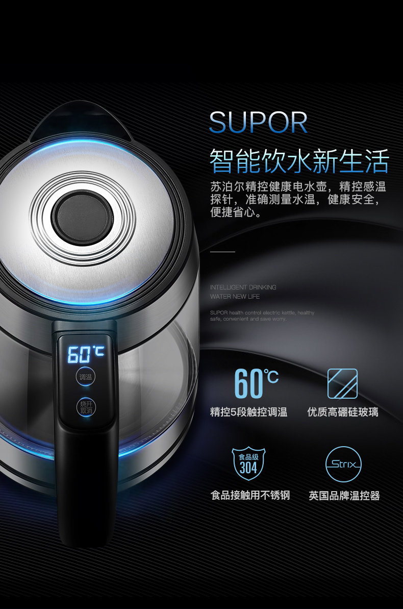 商品名称:苏泊尔(SUPOR)电水壶 SW-17J80b 高硼硅玻璃电热水壶 电子调温多段温控烧水壶 1.7L