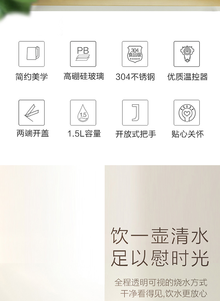 商品名称:美的(Midea)电水壶热水壶电热水壶玻璃水壶高硼硅玻璃电水壶烧水壶MK-GJ1503