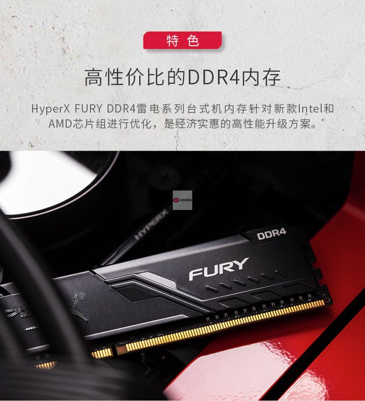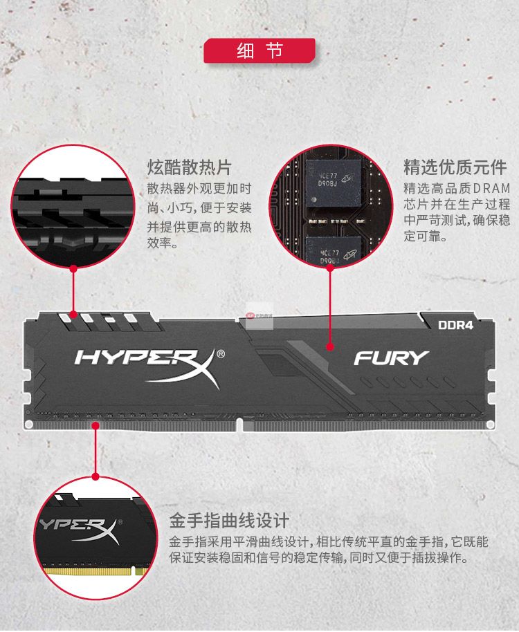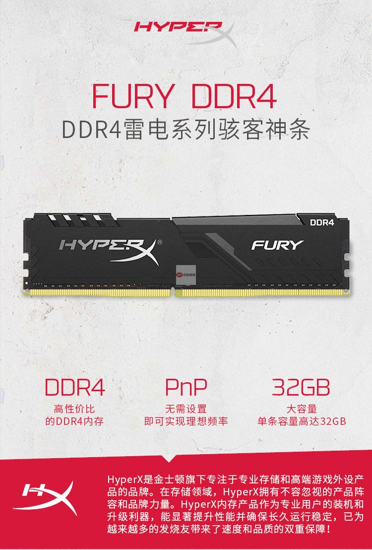 商品名称:金士顿 (Kingston) 16GB(8G×2)套装 DDR4 2666 台式机内存条 骇客神条 Fury雷电系列