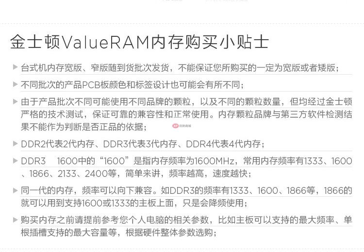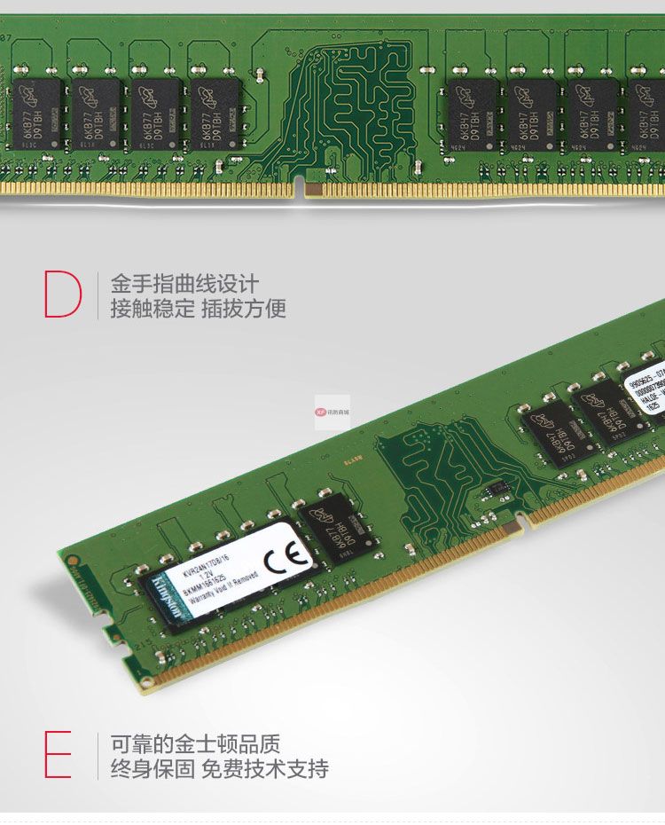 商品名称:金士顿(Kingston)内存条DDR4 2400兼容2133 4代台式机内存条1.2V8G4G16 台式机内存条4G