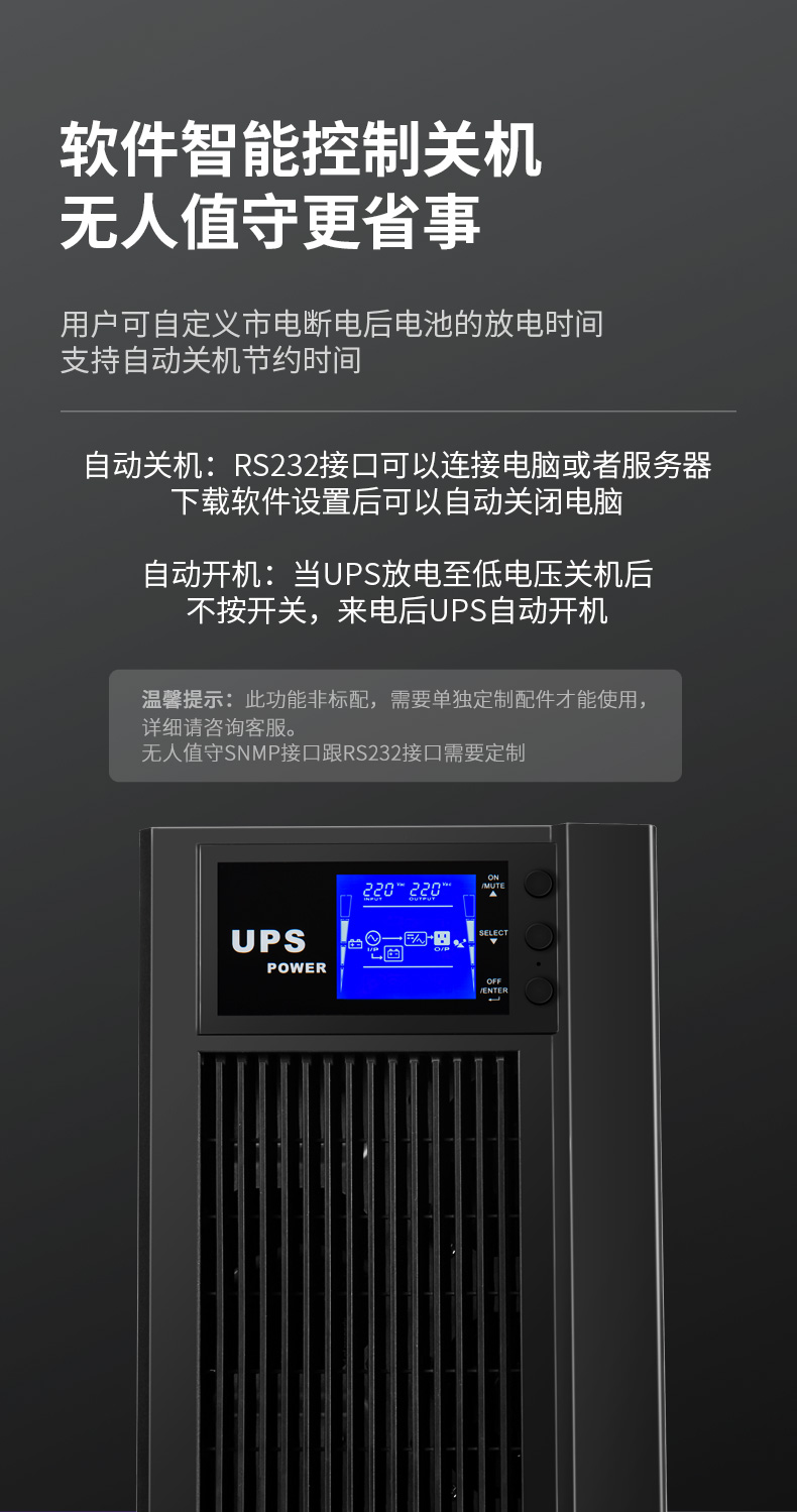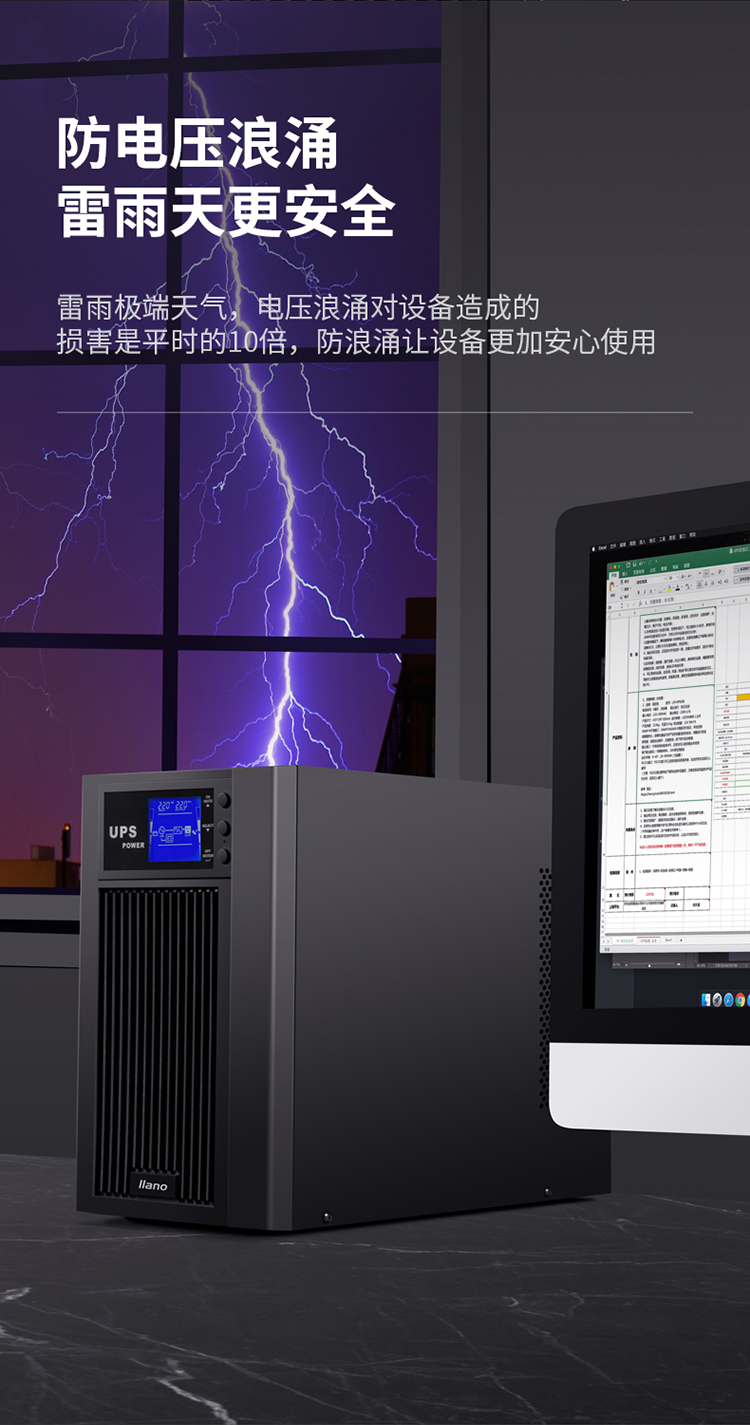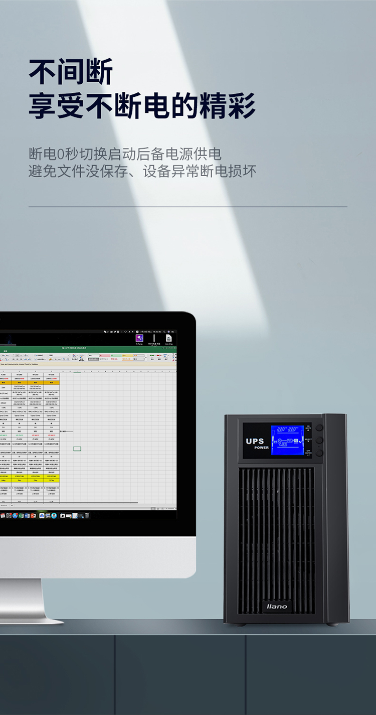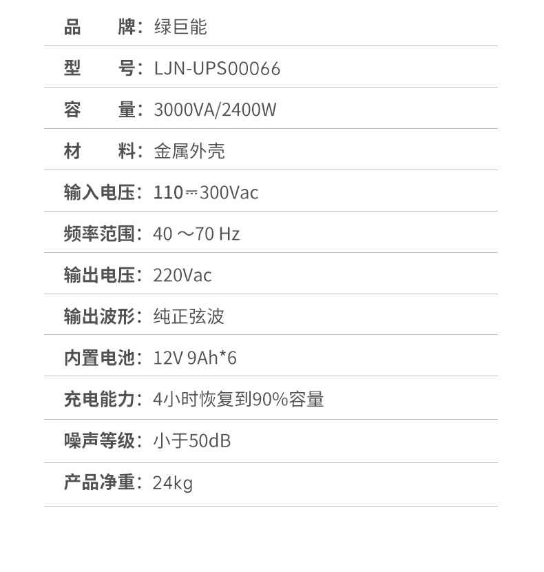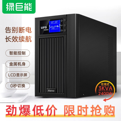 商品名称:绿巨能(llano)UPS电源家用 不间断电源 服务器办公电脑后备电源 金属外壳 在线式 3KVA/2400W 9AH电池*6