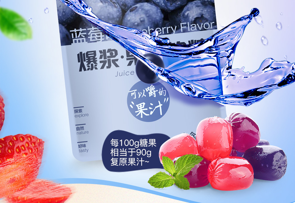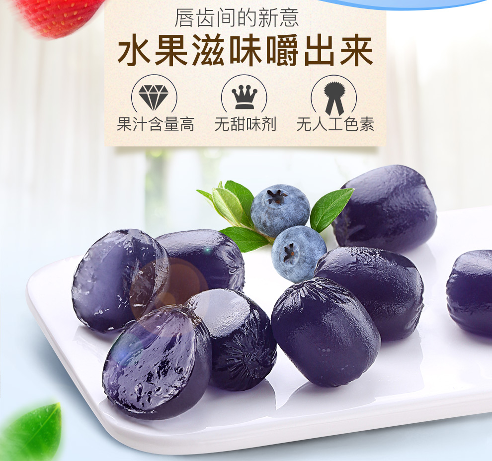 商品名称:300减210_百草味 爆浆果汁软糖45g 橡皮喜糖果水果糖万圣节礼物 MJ 蓝莓味