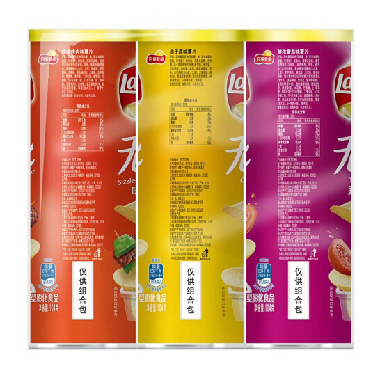 商品名称:乐事(Lay’s)无限薯片 休闲零食 104g*3组合装(原味+烤肉+番茄)百事食品