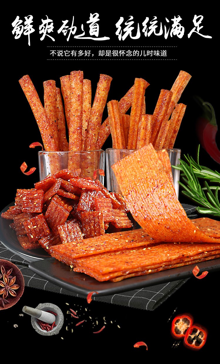 商品名称:杉城 湖南特产网红辣条大礼包麻辣味豆皮老式大辣片大面筋500g