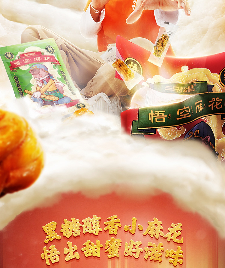 商品名称:三只松鼠休闲零食天津风味美食小吃小麻花黑糖味悟空麻花108g/袋